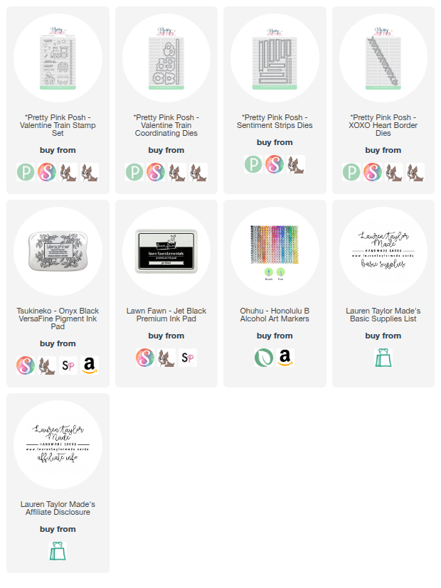 For today's throwback to my time with Pretty Pink Posh, I'm sharing a Valentine's Day card. I started with stamping my Valentine Train Stamp Set images on white cardstock with alcohol marker friendly black ink. My images are colored in with red, pinks and soft purple Ohuhu Art Honolulu Alcohol Markers. I used the Valentine Train Coordinating Dies to cut the images out. For this card, I wanted the train to be my main focus, so I decided to do a subtle, tone on tone background.