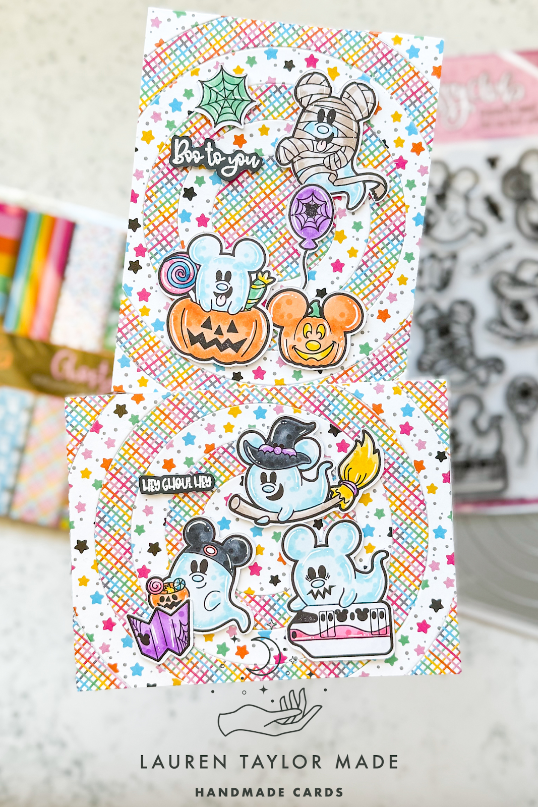 I started with die cutting my circle backgrounds, stamped and colored my images, embossed my sentiments and finally assembled the cards. I think these ghosts are just so adorable and I love their mouse ears! The little details of the images really make the stamps and while there's not a lot to these cards, I think they turned out super fun.