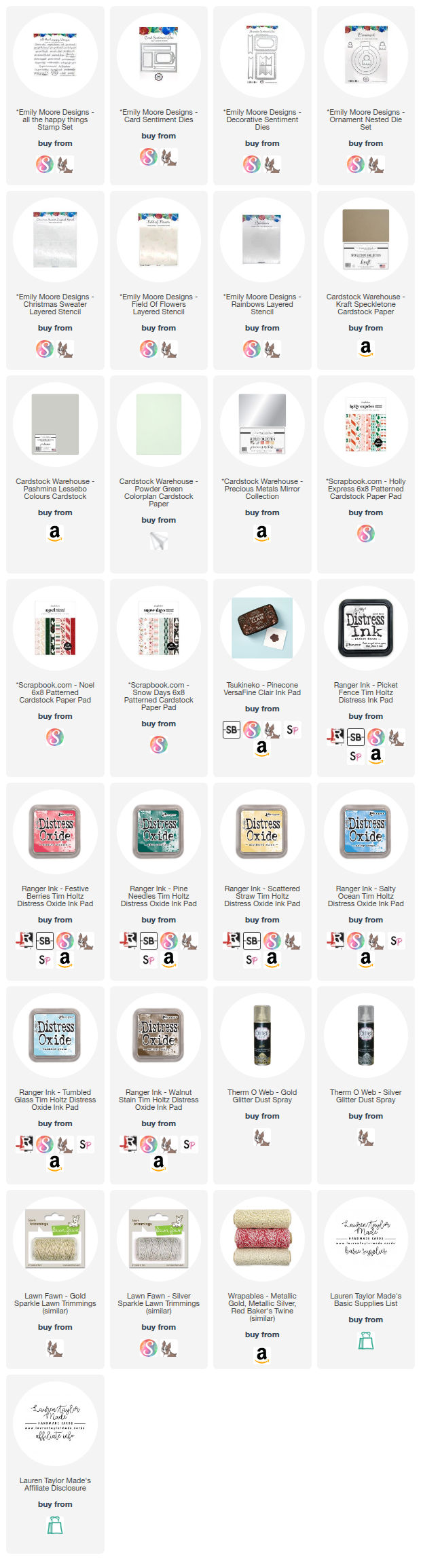 In the end, I created three different cards with the same layout but very different looks. Between the rainbow stenciled ornaments, the poinsettia-inspired florals, and the cozy sweater background, I can’t decide which one I love most. That’s the beauty of these dies and stencils—you can create endless variations to suit your holiday style. Don’t forget to check out Emily Moore Designs for all the fun crafty supplies I used today!