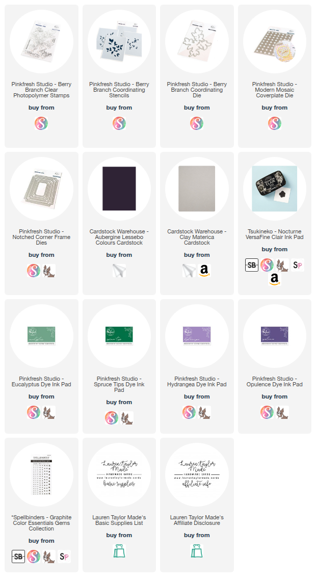 For the focal point, I stamped the berry branch image onto more Clay Materica cardstock and used the coordinating stencils to bring it to life. The berries are shaded in Hydrangea and Opulence inks for a festive purple tone, while the leaves are blended with Eucalyptus and Spruce Tips for soft greenery. After die cutting the branch, I adhered it to the center of the card with foam adhesive. I then popped up the sentiment panel in the bottom right corner and finished everything off with a scattering of Graphite gems from Spellbinders for a little holiday sparkle. I love how the deep purples and greens paired with the warm clay cardstock make this feel both elegant and festive!
