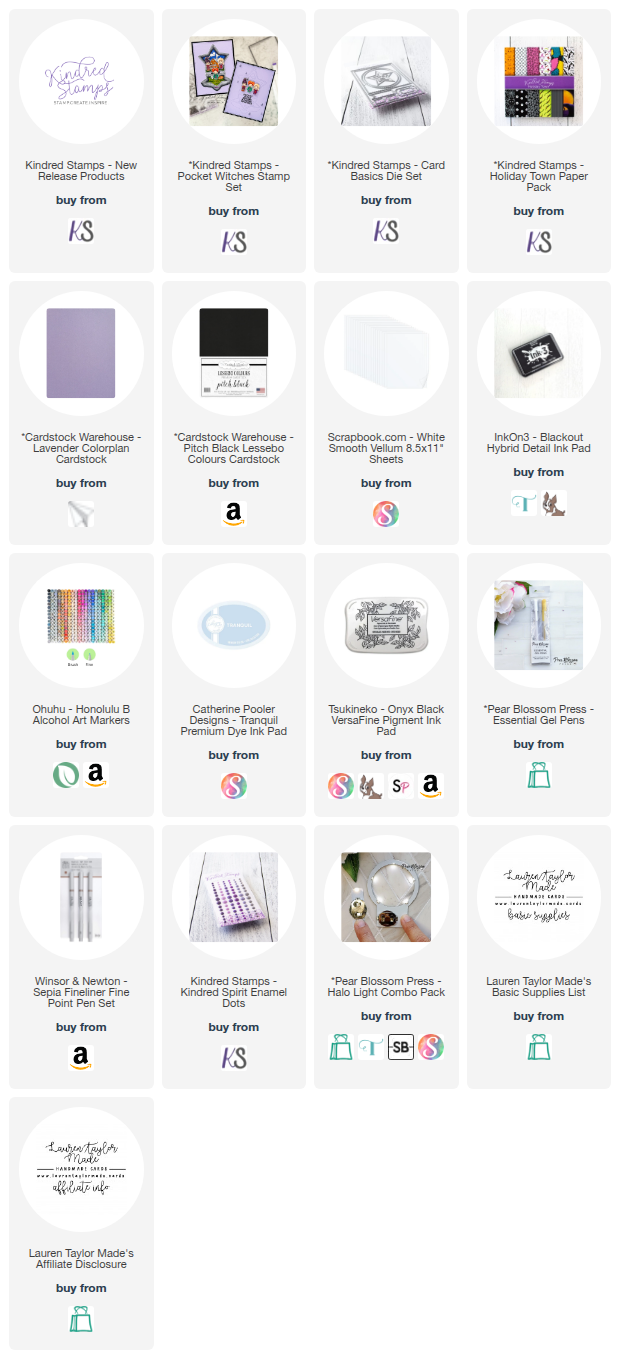 For today’s Fandom Friday, I’m sharing a card (and video!) featuring the brand-new Pocket Witches stamp set from Kindred Stamps. I started by stamping and coloring all the images—the witches twice—so I could create two different cards with the same set of adorable witches. In the video below, you’ll see the process for my first card, which comes together with soft lavender tones, a star pocket container, and the sentiment “Pocket Size Spooks Heading Your Way.” It’s a simple layered design with just enough foam adhesive for dimension, and I finished it off with a few purple enamel dots for extra charm.