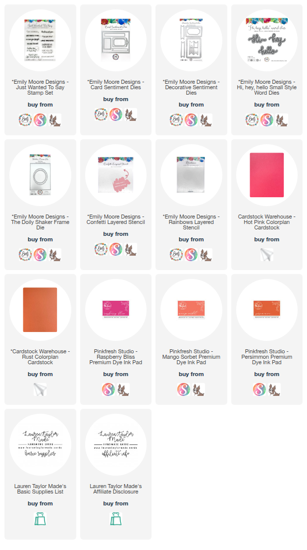 To make my card, I started with some ink blending using the Rainbows and Confetti Layered Stencil Sets to build two different backgrounds with warm, vibrant tones. I then die cut and layered my stenciled panels using several dies from Emily Moore Designs, including the Card Sentiment Dies, Decorative Sentiment Dies, and the Doily Shaker Frame Die. The “hello” sentiment and “you are awesome” banner tie everything together, layered on top of soft vellum details for a light and airy finish. I love how all the layers add visual dimension without adding bulk—perfect for mailing! You can watch my full process video below to see how it all came together and get a closer look at those fun color blends and playful shapes.