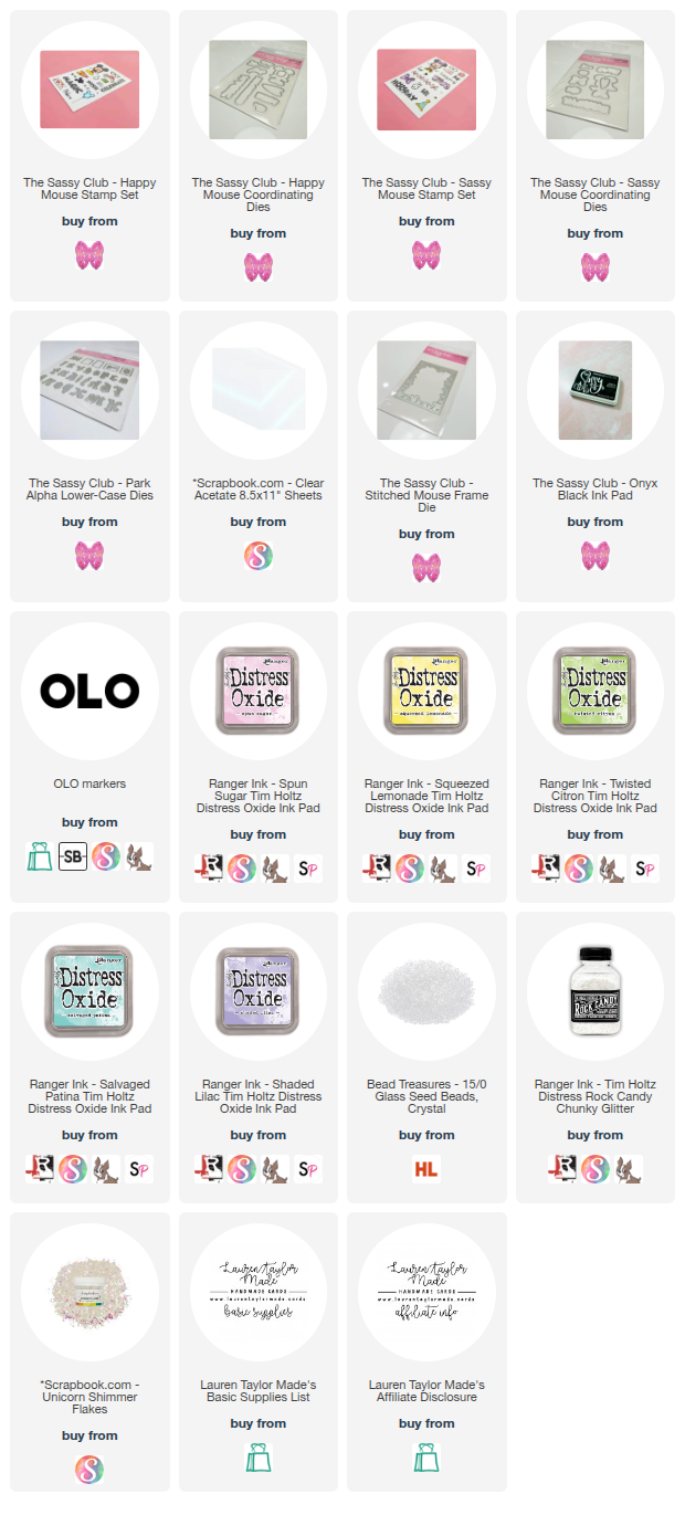 Today I am sharing my card for the Oh So Inspired Collaboration Hop, and this month we were inspired by a beautiful pastel rainbow shaker card created by Tina from @cardsandcoffeetime. Since the hop landed on a Friday, I had to add my Fandom Friday twist using products from The Sassy Club. I stamped and colored my two sweet mice from the Happy Mouse and Sassy Mouse stamp sets, die cut them with their coordinating dies, and set them aside. For the background, I created a soft pastel rainbow blend using Spun Sugar, Squeezed Lemonade, Twisted Citron, Salvaged Patina, and Shaded Lilac Distress Oxides. I overlapped the colors to create smooth transitions, then trimmed the panel to A2 size for the shaker backer.