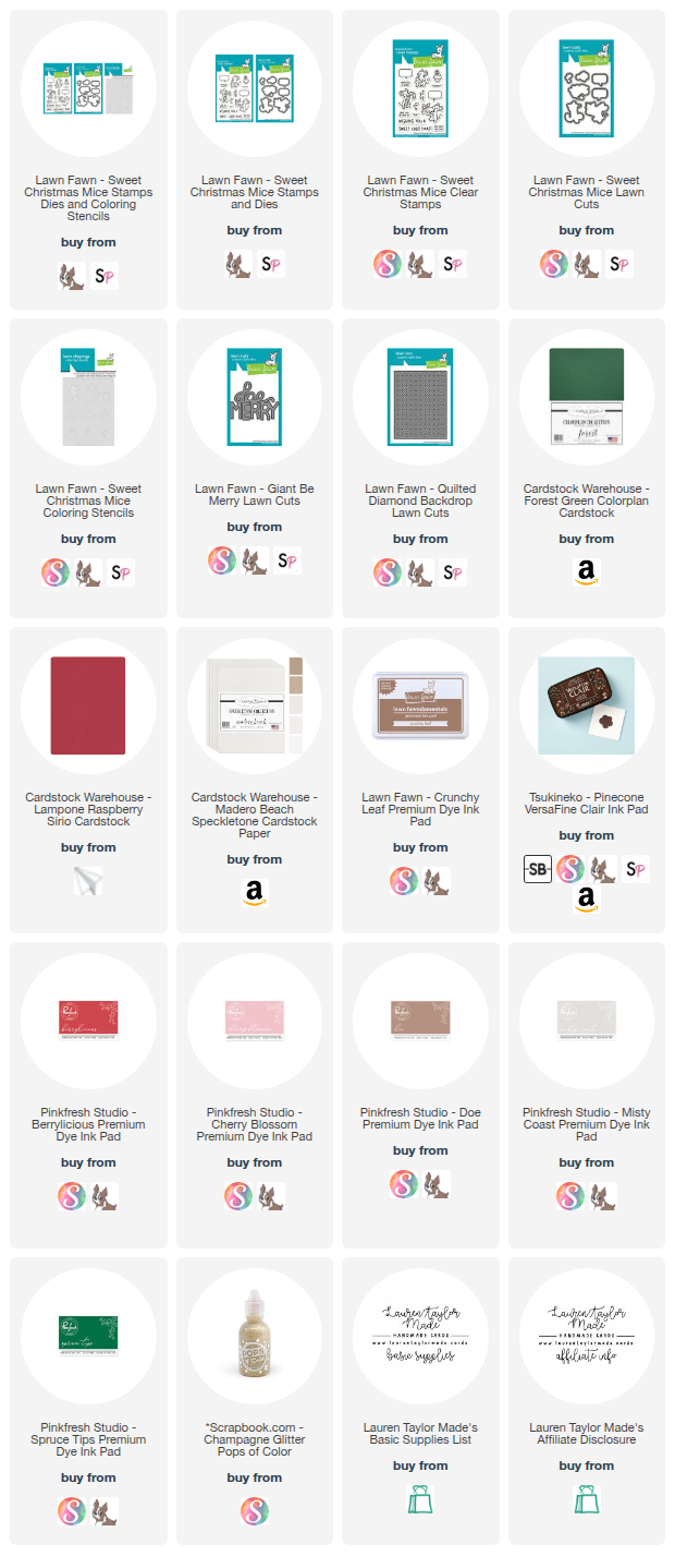 Once everything was inked and ready, I layered the striped strip and the music note element toward the bottom left side of the card, trimming off the extra, and then used the leftover pieces to balance the design in the upper right corner. I die cut the word “Merry” twice from red patterned paper and once from cream paper using the Christmas Joy Decorative Die Set, stacked the reds together, and offset the cream layer slightly to create a soft drop shadow. I glued the sentiment to the center of the card, just above the green patterned strip, and added white gel pen highlights to the letters for extra shine. To finish, I added five Vanilla Bean Gloss Pops of Color around the layered die cuts for subtle dimension. I love how this card captures that nostalgic, cozy Christmas feel with a touch of vintage charm.