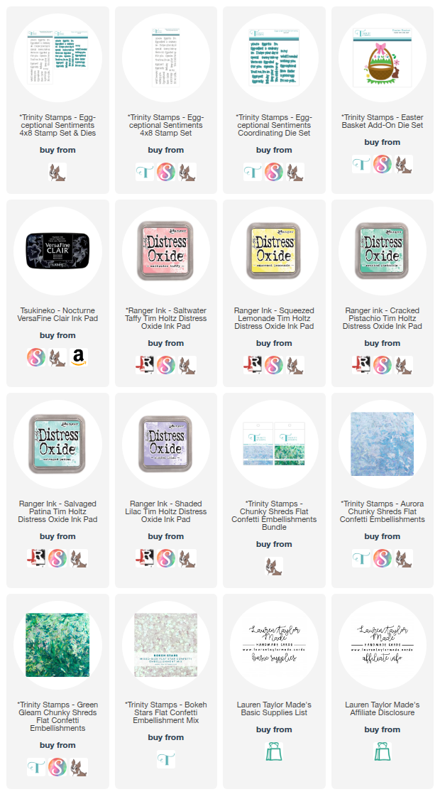 Today I am sharing a bright and cheerful Easter shaker card using Trinity Stamps. I started with a 3 by 6 inch piece of white cardstock and blended a soft rainbow using Distress Oxides in Saltwater Taffy, Squeezed Lemonade, Cracked Pistachio, Salvaged Patina, and Shaded Lilac with my Trinity Stamps Blending Buddies. Once the colors were blended, I spritzed the panel with water and Hero Arts White Iridescent Shimmer Mist to add texture and sparkle. I gently dabbed up the excess moisture with a towel and set the panel aside to dry completely.